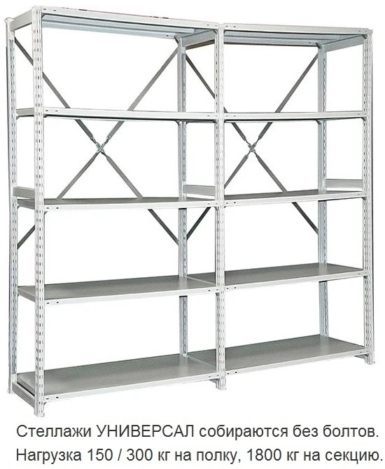 - Металлические полки с максимальной нагрузкой на полку – 150 кг или 300 кг (усиленные полки)